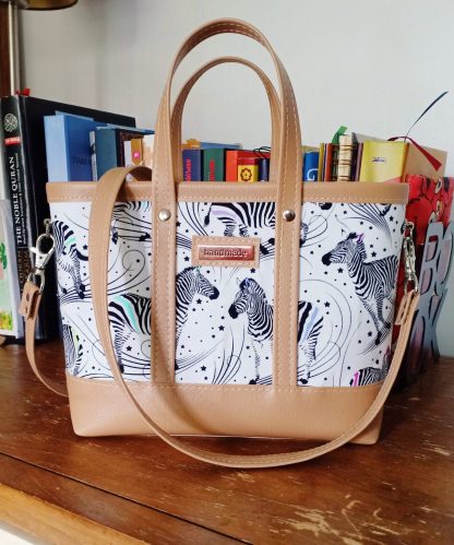 This pattern comes in 2 sizes and 2 styles (tote handles or crossbody).