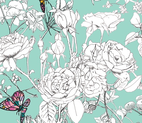 From wing scales in butterflies to city streets and tiny image pixels, we are encompassed by a unique grid weaving the world. Katarina explores this theme with her distinctive artistic style, painting intricate florals and textures in tones of ultraviolet, mist, ochre, and black & white.