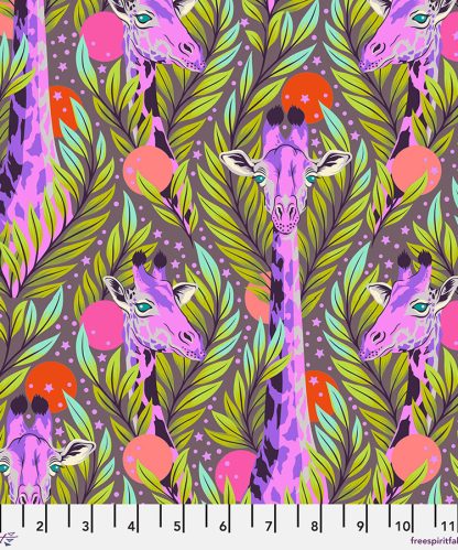 Everglow began as a collection of neutrals and evolved into a full collection of radical color designed to add depth to the Tula Pink world of fabrics. When I began designing this collection, I was searching for something new to say about color that would still live in my world. The only realm of color that I have never touched on is the world of neutrals, those subtle colors that create the perfect backdrop to the vibrant color that I am already so fond of. Soft, earthy colors alone wouldn’t stand up to my everyday colors so I decided to pair their whisper with the loudest scream of color I could create on cloth – neons. Each neon is paired with their corresponding neutral in a light, medium and dark.