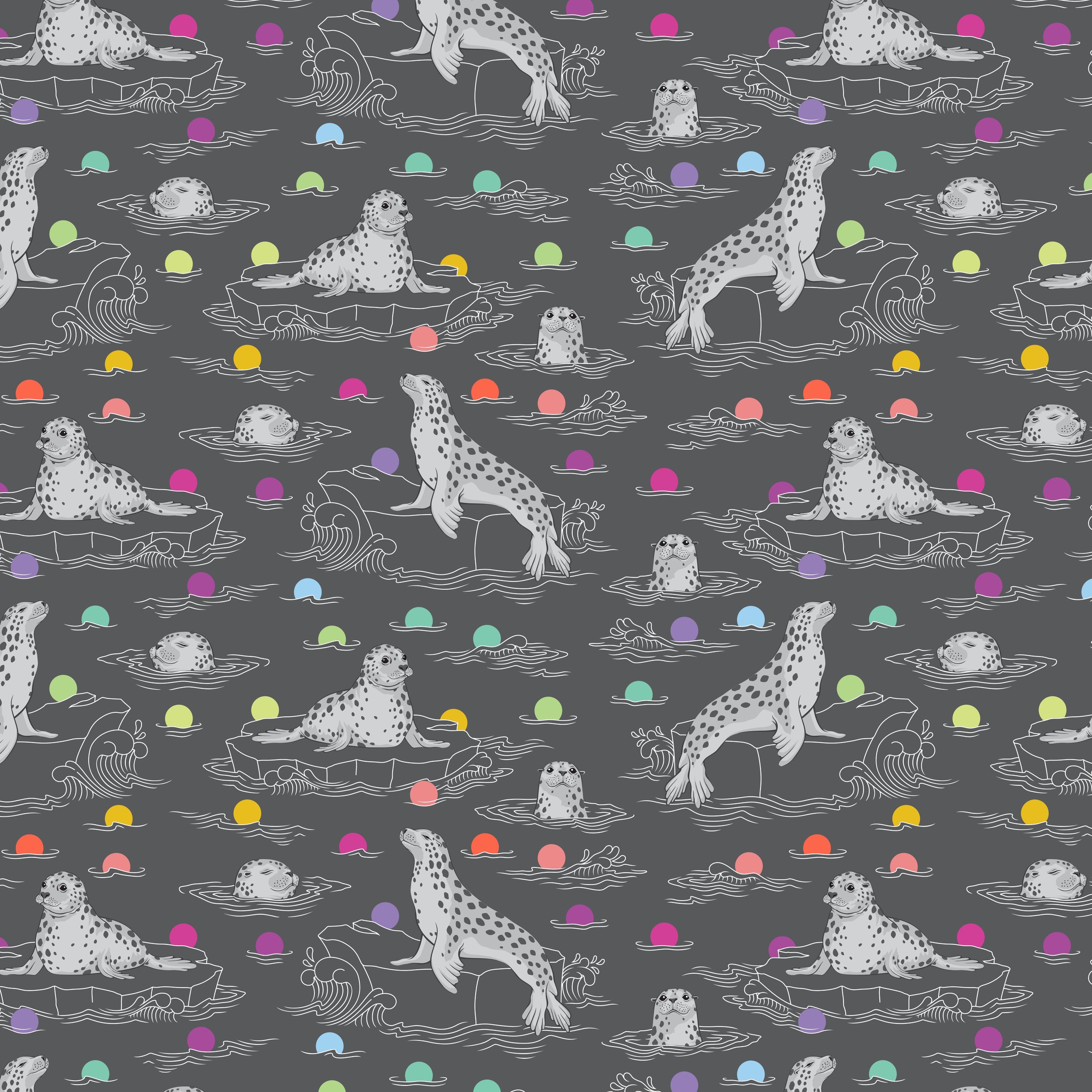 For the main prints, the focus is on animals that naturally live their lives in shades of gray: wolves, bears, snow leopards, puffins, and sea lions. These eight large-scale prints are highly illustrative and rich in detail, intentionally designed for fussy cutting and meant to stand as the stars of the collection.