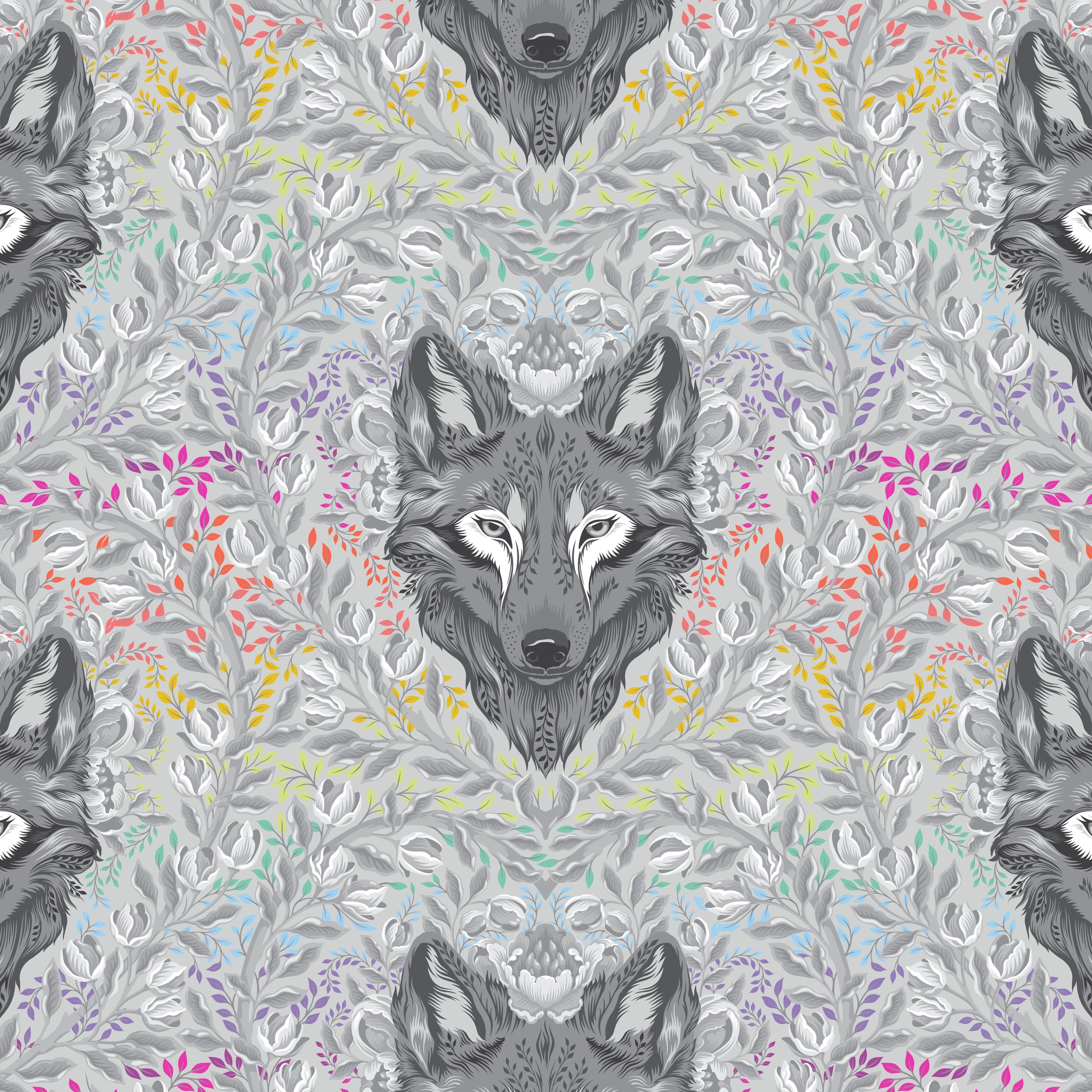 (Tula Pink) Graywork, Wolf Of Pink Street in Fog